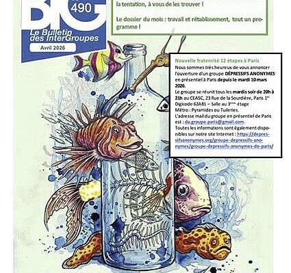 Article dans le Bulletin de l’Intergroupe Paris-Banlieue des Alcooliques Anonymes (AA) : Nouvelle fraternité 12 étapes à Paris